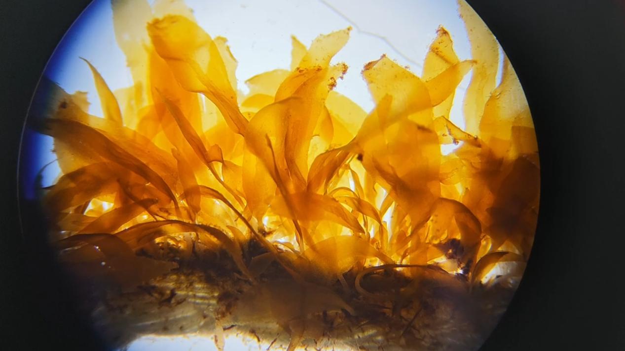 項目負責人、福建省水產研究所副研究員鐘晨輝表示,孢子體是可供食用的部分,成熟后孢子會形成一個很大的孢子葉,孢子葉里面可以釋放出很多孢子,這些孢子附著在苗簾上便形成幼苗;而配子體處于微觀尺度,在室內可控條件下能夠無性擴繁,不受外界環境影響。“我們從10月17日開始進行配子體接種,目前育苗周期約41天,已培育出6億多株優質苗。”鐘晨輝說道。