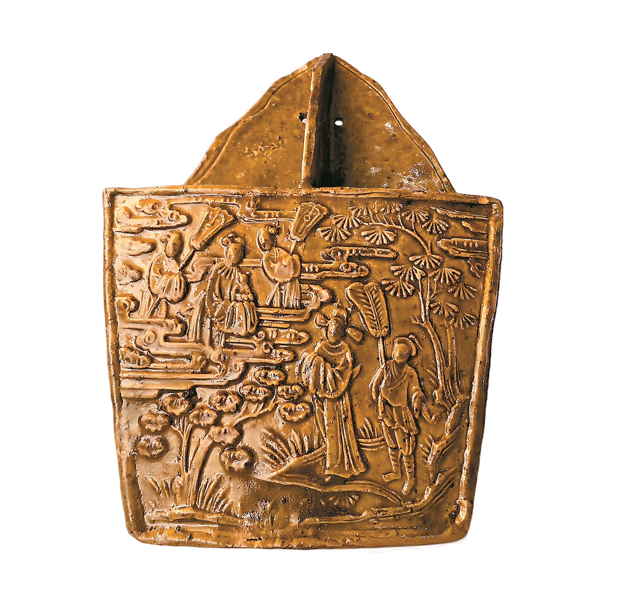 閩東箸籠的紋樣大多描繪豐富吉利、人丁興旺的主題,色彩質樸沉穩。在內容上,主要圍繞著“福、祿、壽、喜、財、吉、和、安、養、全”10個字展開,不追求宏大敘事,而是緊密圍繞民眾喜聞樂見的世俗生活圖景進行構思,充分反映了民間工匠豐富的想象力與創造力。工匠們大膽地將有關的人事、物象、祥禽瑞獸乃至神仙等組織成豐富的畫面,并配以相關吉語,寄托福壽綿長、富貴康寧、好德高潔、夫妻和睦、子孫繁盛等寓意,充分體現了“圖必有意、意必吉祥”的裝飾原則。在色彩上,閩東箸籠多以黃褐色、棕褐色等單色為主,成色隨坯料與釉料中金屬氧化物含量而自然變化,無過多修飾。這種自然樸素的色彩美感,契合閩東朱子學所倡導的務實內斂精神,是閩東地域審美的又一重要表現。