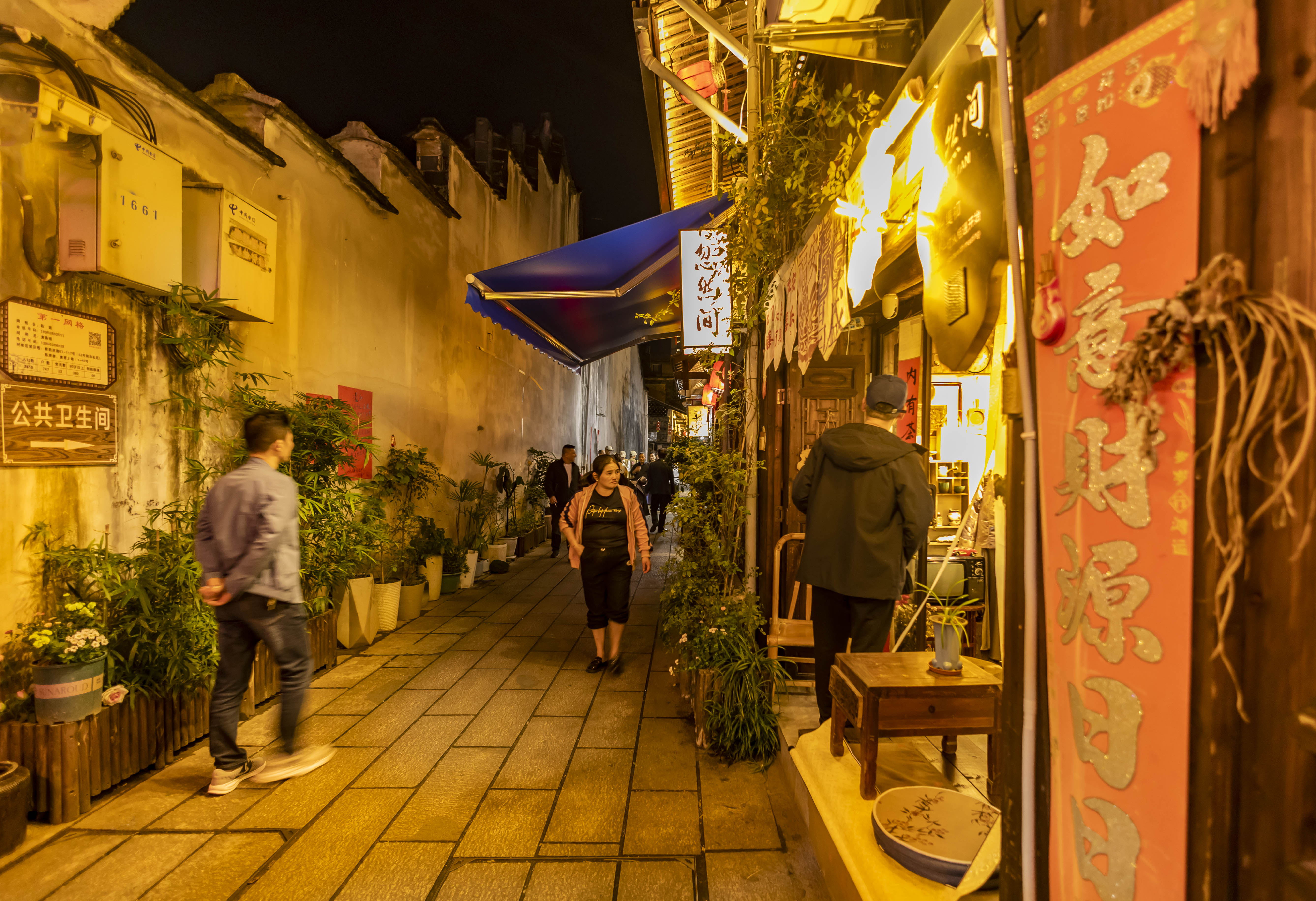 沐福而行,一座名叫察陽的古村,飄出淡雅的茶香。察陽,茶陽!光是村名就勾起人們吃茶的欲望。古村保留著一條完整的古街,在金黃色夜景燈光下散發出濃厚的古味,一只小小的喜鵲在高墻上燈罩后跳進跳出,嘰嘰喳喳,那一幅歡快的模樣像是迎接南來北往的客人。古街直通古老的碼頭,當年出洋的茶葉就從這里交易,裝船,進入三都港出洋銷往歐洲。一味純厚的茶香讓人清神,循著茶香,進得“忽然間”茶事空間,店小院大,“忽然”味十足,院內茶室味古,一顆躁動不安的心歸于寧靜。一位文友試了一套民族風服飾,二話不說就拍下。靠墻處,有一條小小的樓梯通往小閣樓,樓上擺滿了老物件,有蝙蝠造型的老衣柜構件,也有天官賜福的木雕牌匾,還有龍鳳福老燈盞、福牛腿、如意、福瓷盤等,無不送出東來福分。硯廬騰云,壺中映月。“忽然間”的偶遇,只為得一夜閑坐,吃得一壺坦洋功夫茶。古街深處,又有“無二湯社”“墨茗軒”“會友共享室”云云,自然又拾得一番茶趣。