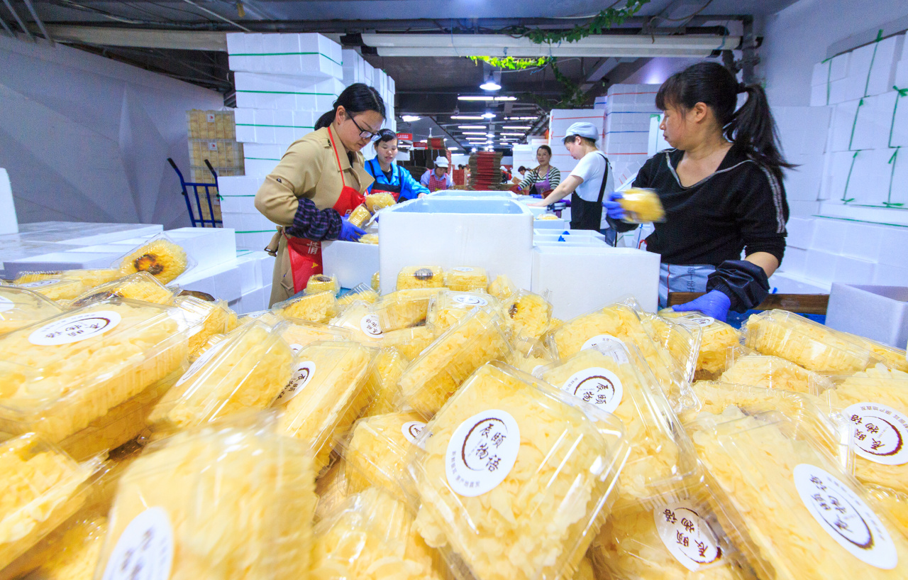 福建鮮珥貿(mào)易有限公司里,工人在挑選、打包銀耳等農(nóng)副產(chǎn)品,準(zhǔn)備發(fā)往全國 王志凌 葉陳芬 攝
