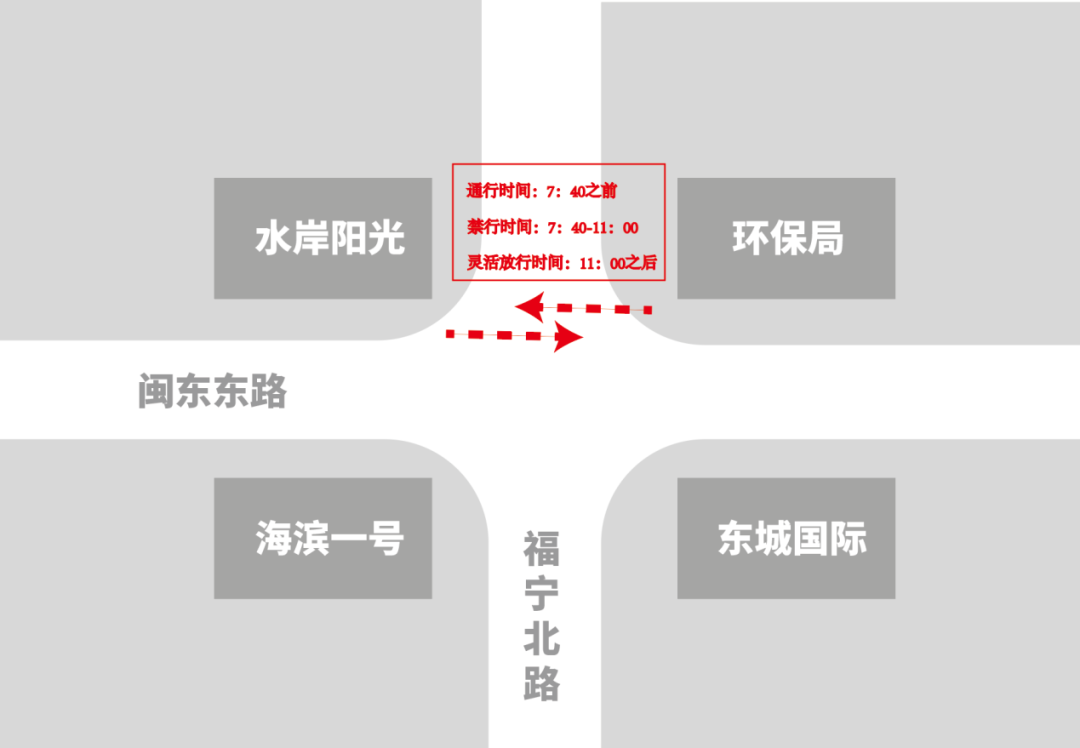 7:40之前可通行;7:40—11:00禁止通行;11:00之后視現場情況間歇式放行。如圖所示: