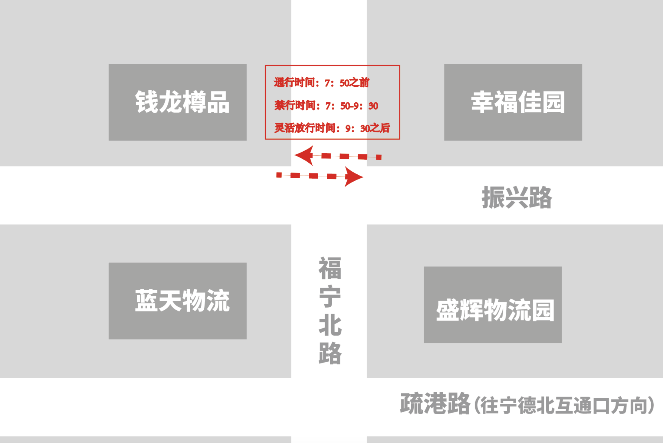 7:50之前可通行;7:50—9:30禁止通行;9:30之后視現場情況間歇式放行。如圖所示: