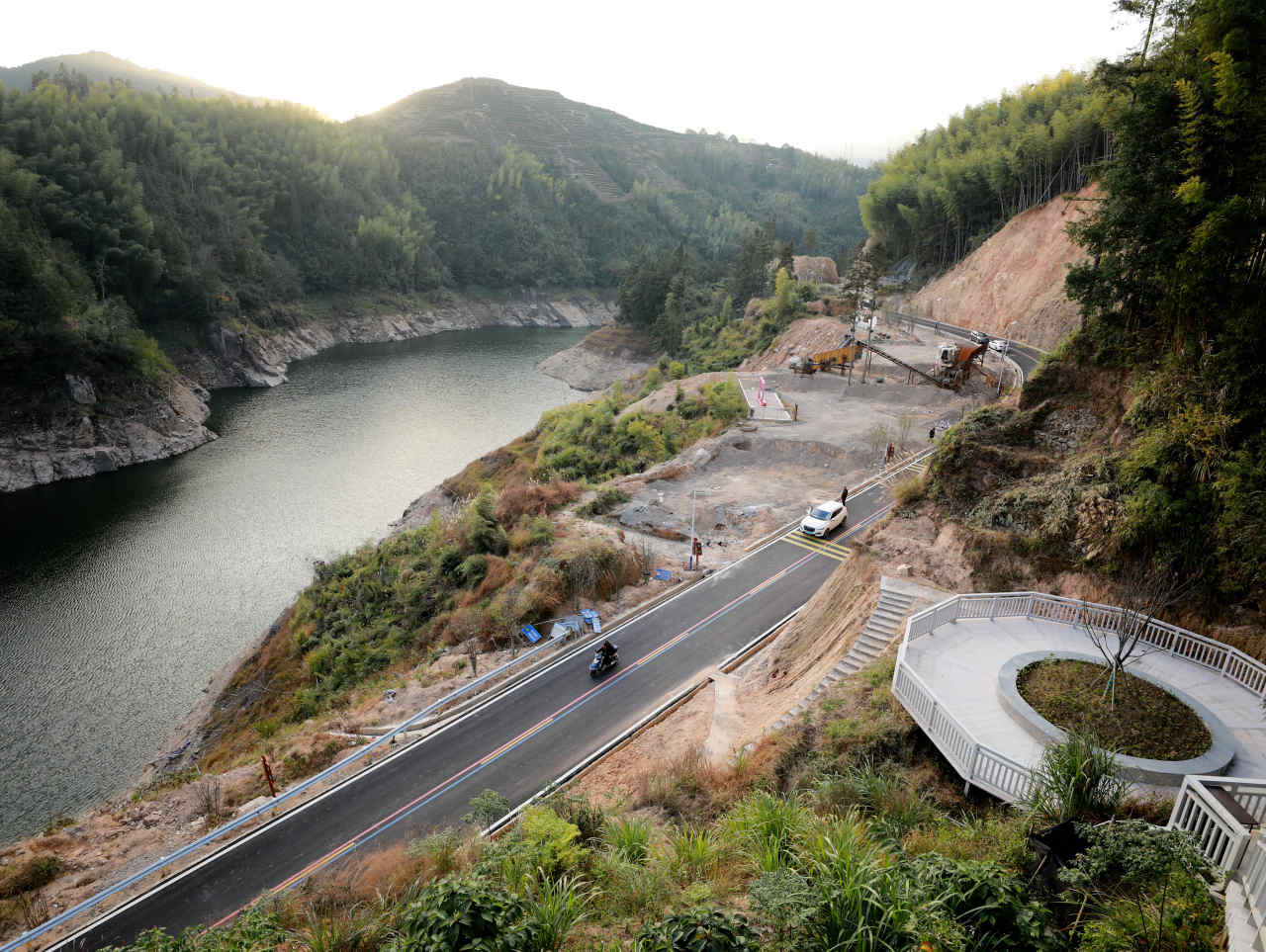 “以前大車進不來,竹子和茶葉運不出去,年輕人紛紛外出發展。有一年村里民房起火,大型消防車無法進村,只能靠人工滅火。”村黨支部書記張龔賢回憶道。如今,這條曾經的“卡脖子路”已不能阻礙村莊的發展。村里新建了一條路基寬6.5米、全長2.8公里的雙向“觀湖大道”。新路不僅串聯起村莊、茶園、庫區與森林,還配套建設了沿湖觀景平臺,形成“車行山水間,人在畫中游”的生態景觀長廊。