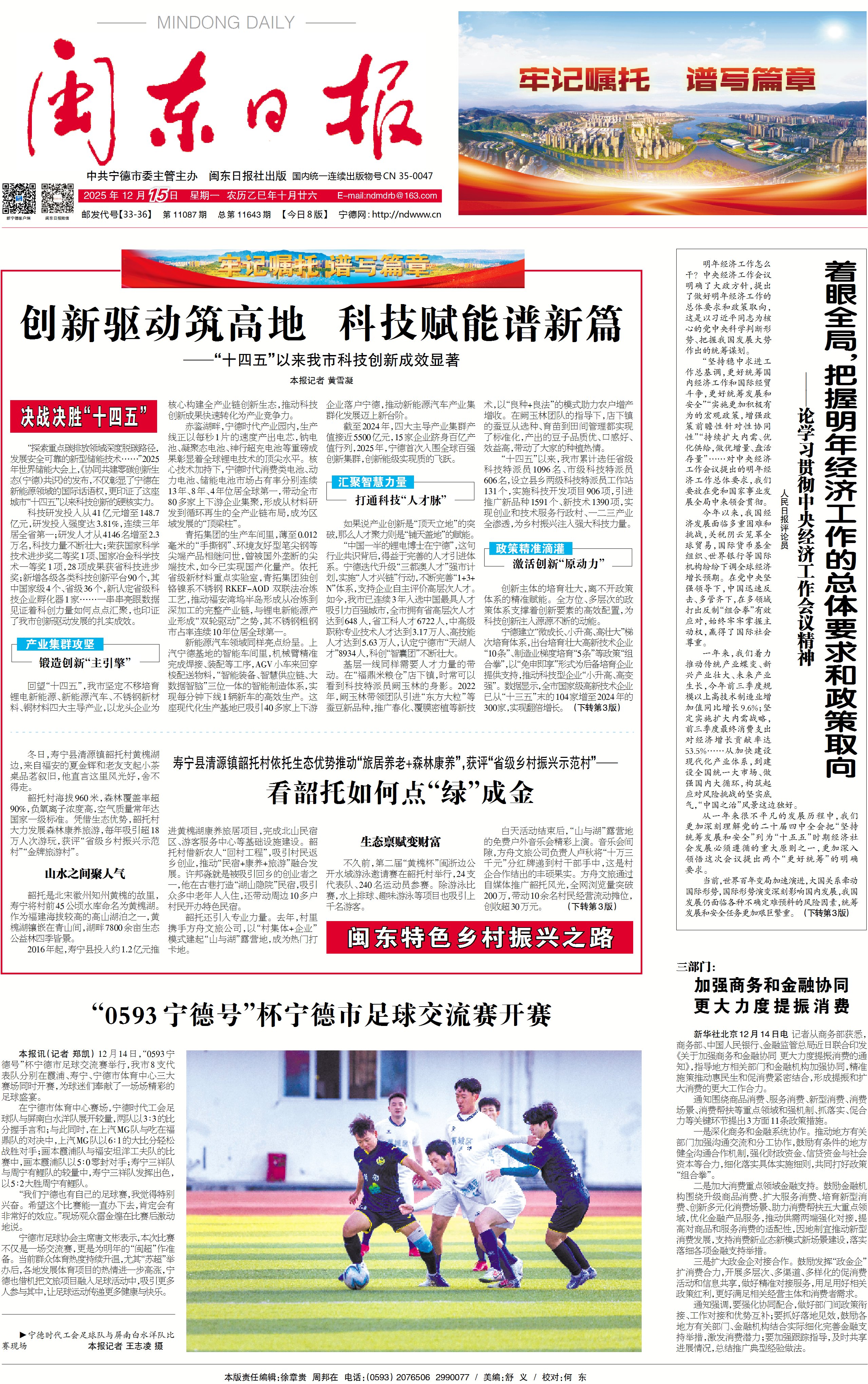 從“中國新能源電池之都”的加冕到全球百強創新集群的入圍,從主導產業的“單點突破”到產業生態的“集群崛起”,從企業創新的“內生動力”到政策人才的“全鏈賦能”,寧德正以更大力度推進科技創新,在鋰電新能源、新材料等領域持續攻堅,在傳統產業升級、新興產業培育中深化突破,讓科技創新成為高質量發展的最強動能,在閩東大地續寫更多“科技賦能”的精彩故事。