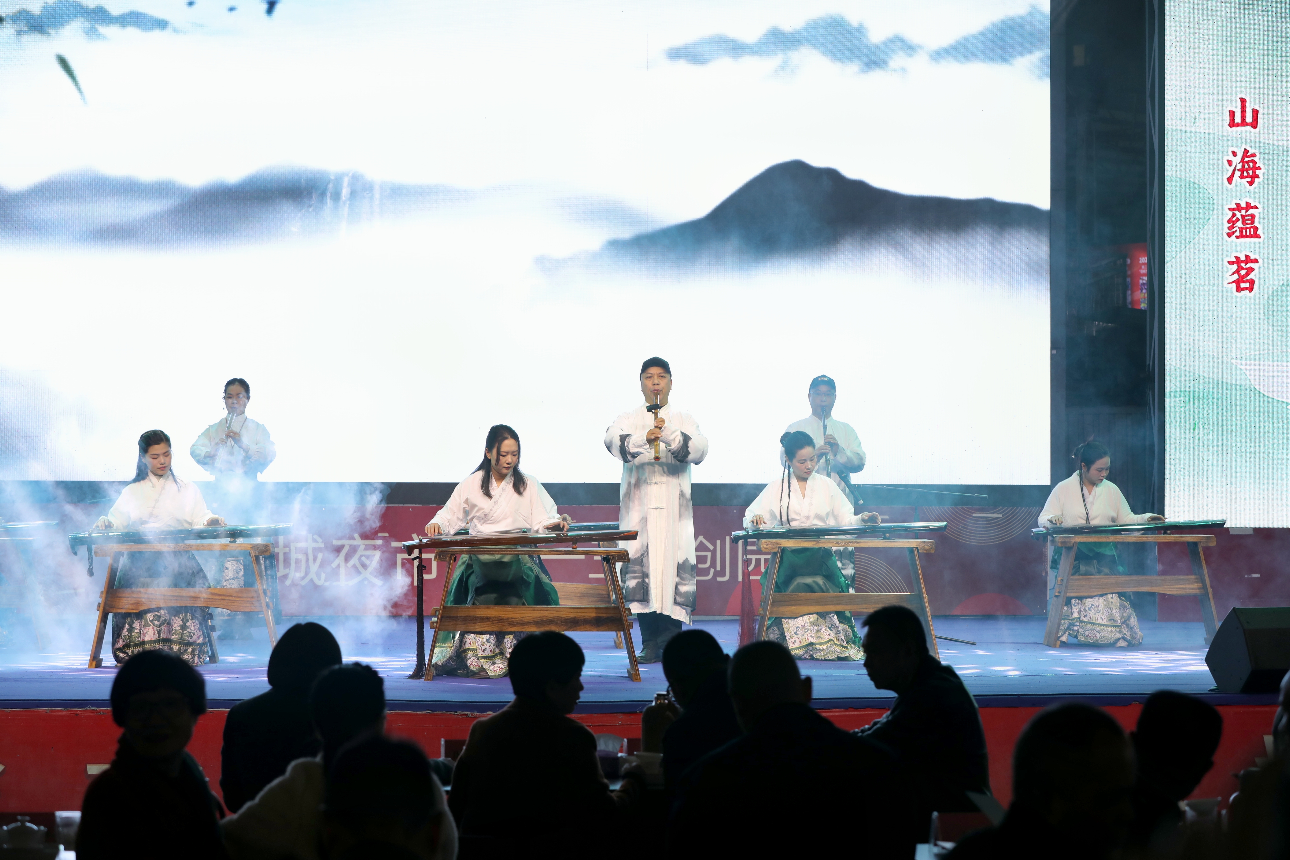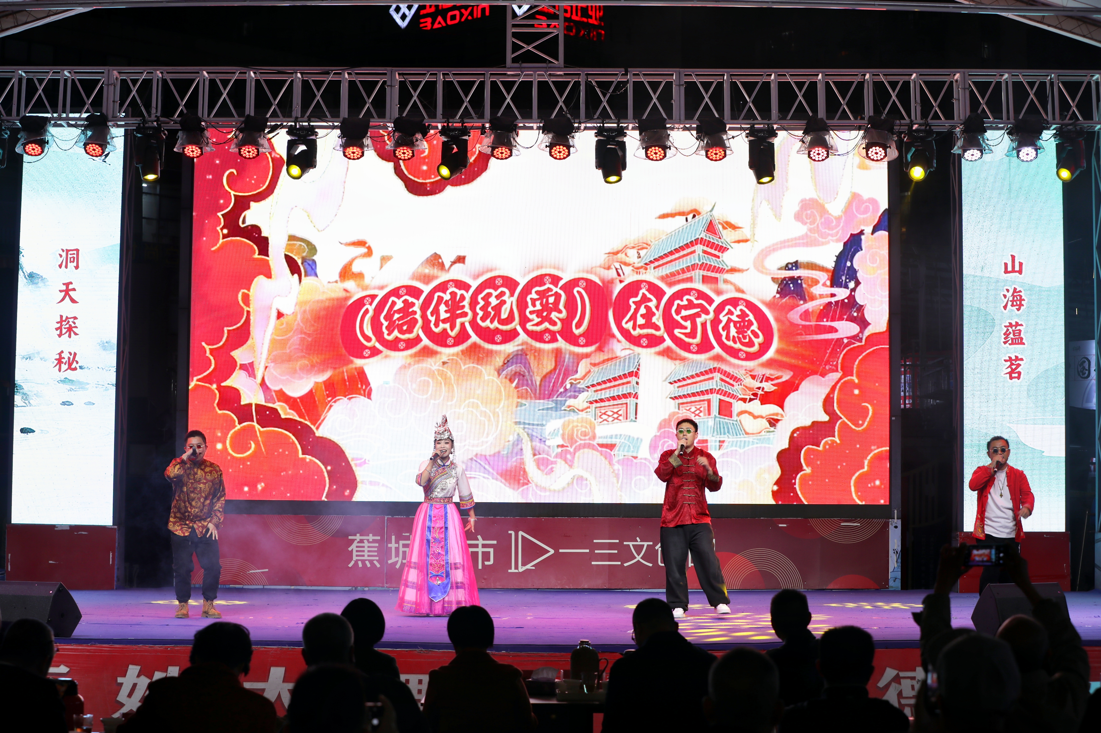 當晚19:30,暖場視頻《霍童洞天》《蕉城茶事》率先登場,生動呈現了蕉城的山水秘境與茶鄉風情。民樂《墨緣》悠揚開篇,隨后致辭環節執行主編回顧了兩部著作的編纂歷程與時代意義。歌曲《夢回霍山》勾勒出霍童洞天的仙蹤神韻,新書揭幕儀式將現場氣氛推向高潮。脫口秀《蕉城茶事》以風趣語言解讀茶鄉故事,贈書儀式與茶歌《青羽》傳遞著茶文化的溫潤內涵,活動現場同時進行了“寧德天山·大眾茶館”授牌儀式,進一步豐富了夜市的文化休閑內涵,助力茶文化與大眾生活的深度融合。