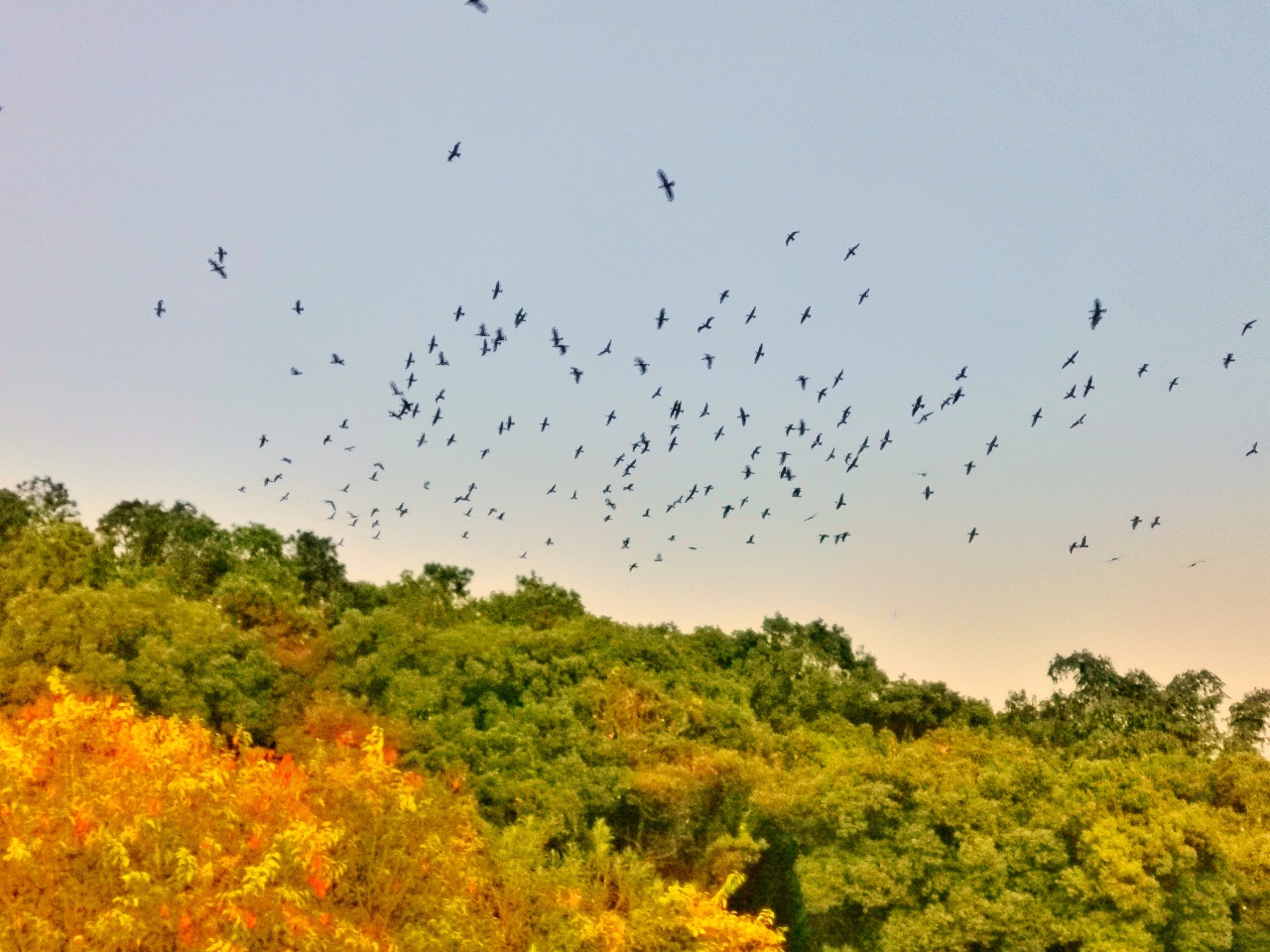 斜陽把湖面染成橙紅,恍若歌里“紅色的朝霞”,而寒意已悄然浸透晚風。這時,耳機里傳來那句“當歲月和美麗已成風塵中的嘆息,你感傷的眼里有舊時淚滴”,聽著旋律,眼前的殘荷與遠飛的鳥群忽然都成了注腳。東湖的草木換屆與候鳥的相聚又分離,它們共同詮釋著四季輪回的主題——那是候鳥與草木對東湖這片“紅塵”的眷戀。
