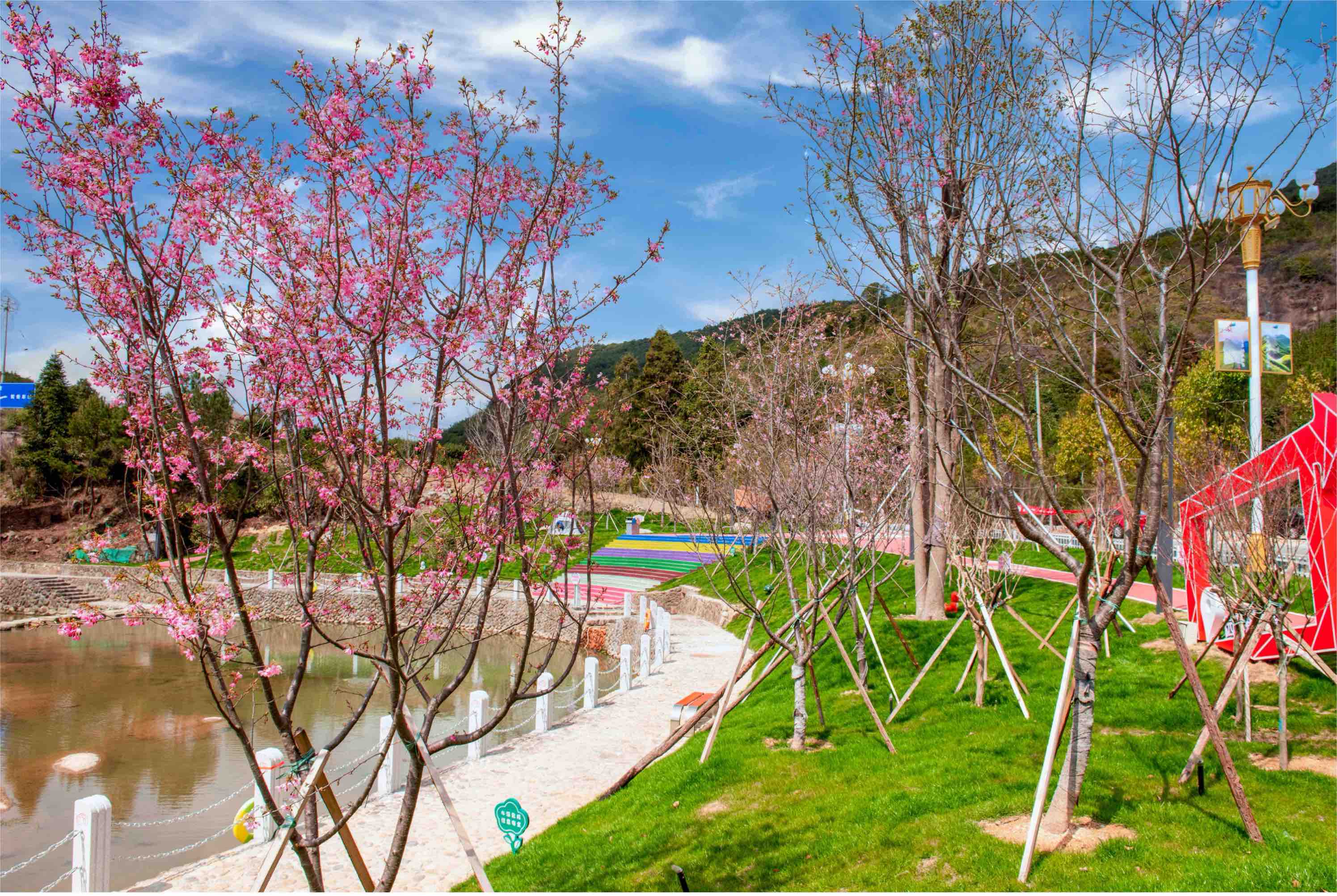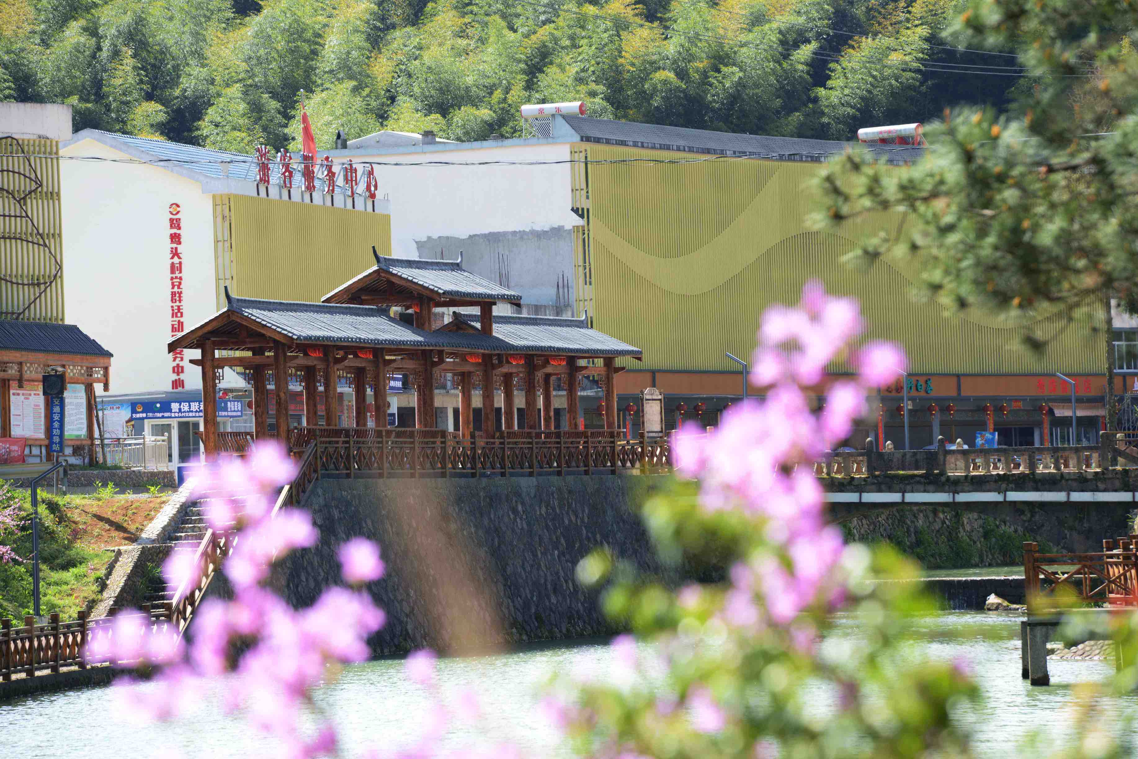 圍繞“對影鴛鴦 愛情小鎮”的定位,村里深挖文化內涵,打造了全長131.4米的愛心吊橋、愛情文化長廊、櫻花谷等網紅打卡點,設計制作鴛鴦愛情元素文創產品。夜幕降臨,夜景燈光點亮整個村落,溪水潺潺伴著舒緩音樂,“夜色經濟”讓游客的停留時間從半天延長至兩天一夜。
