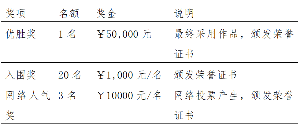 注:獎金均為稅前金額,獲獎者需按國家相關法律法規自行納稅。若作品未達到評審標準,獎項可空缺。