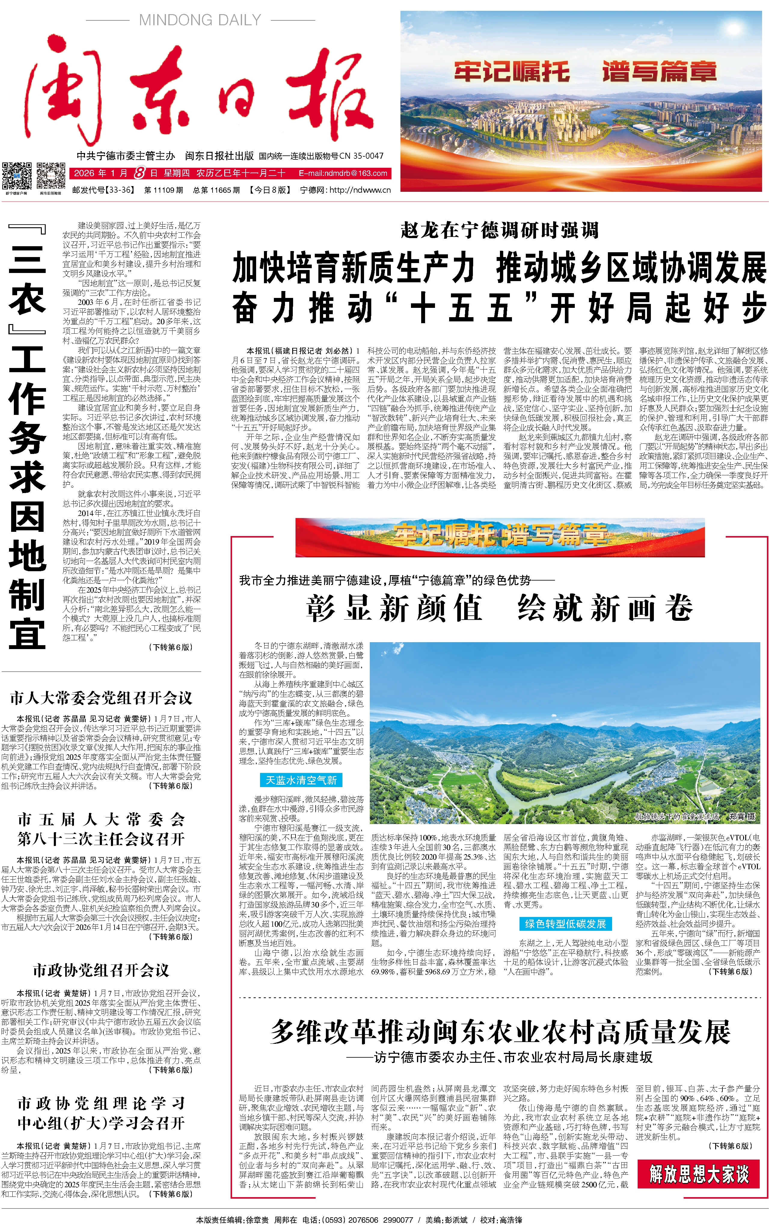 解放思想始終是推動黨和人民事業發展的強大思想武器。康建坂表示,展望“十五五”,全市農業農村系統將堅持“守正創新”,聚焦“牢記囑托、譜寫篇章”主題主線,以“七抓七帶促共富”為抓手,統籌推進現代農業發展、和美鄉村建設、農村改革創新、常態化防止返貧致貧等四方面重點任務,實施一批具有牽引性的重大項目,努力打造全國山海協作共同富裕寧德模式。
