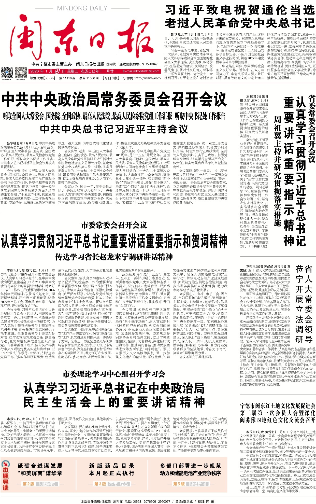 會議強調,要在凝心鑄魂上帶好頭、作表率,堅決扛起寧德作為習近平新時代中國特色社會主義思想的重要孕育地和實踐地的政治擔當,把堅定理想信念作為終身課題常修常煉,不斷增強學習貫徹習近平總書記對福建、對寧德重要指示批示精神的思想自覺和行動自覺,以實際行動堅定擁護“兩個確立”、堅決做到“兩個維護”。要在奮勇爭先上帶好頭、作表率,堅決扛起全省新增長極的職責使命,緊緊圍繞推深做實“1571”策略體系,錨定“開局起勢、實績檢驗”年度主題,拿出更多實招、好招,扎實做好開局之年各項工作。要在自我革命上帶好頭、作表率,結合鞏固拓展深入貫徹中央八項規定精神學習教育成果,堅決扛起管黨治黨政治責任,始終以刀刃向內的勇氣檢視自身、錘煉黨性,共同維護好風清氣正的政治生態。