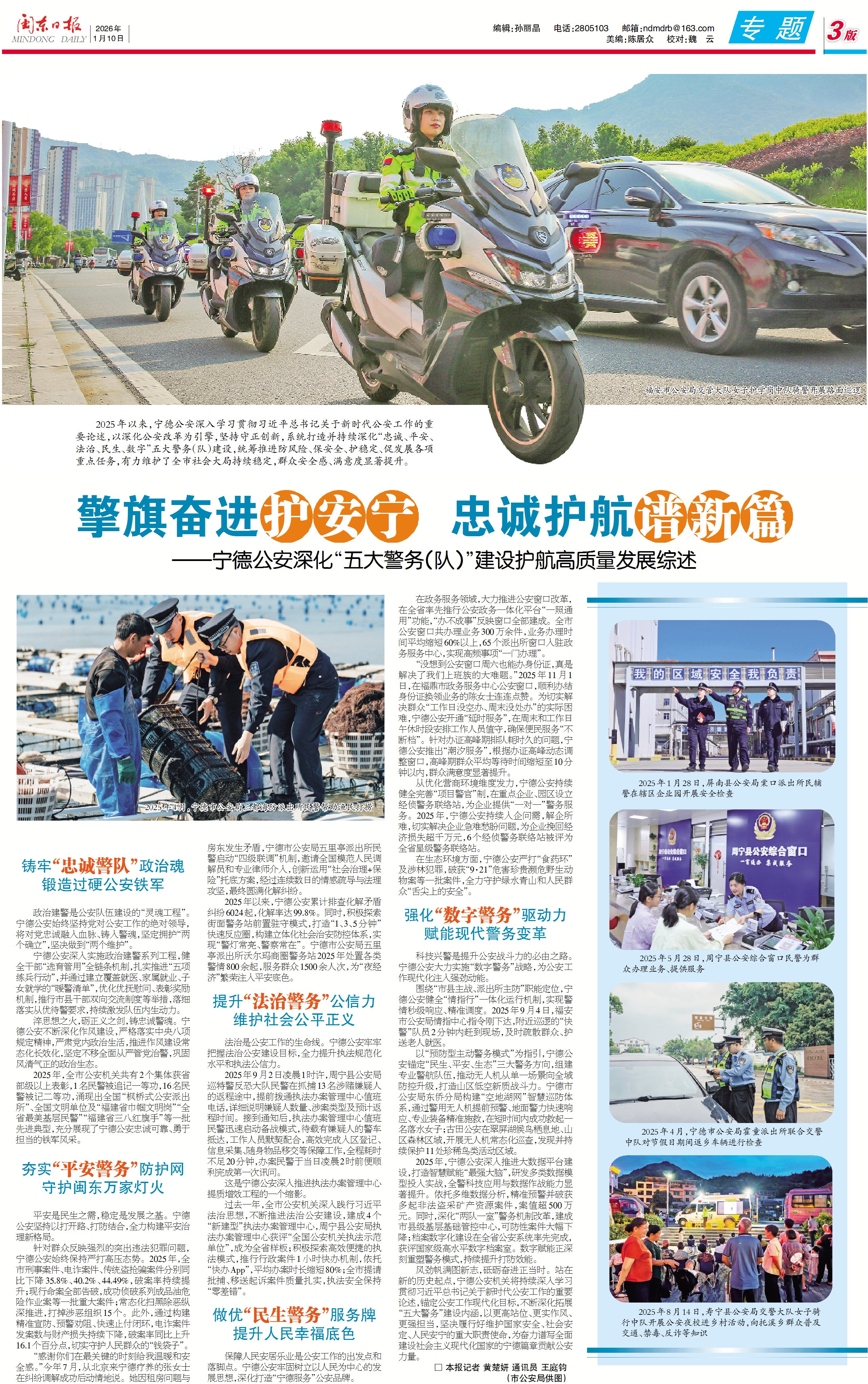 2025年以來,寧德公安深入學習貫徹習近平總書記關于新時代公安工作的重要論述,以深化公安改革為引擎,堅持守正創(chuàng)新,系統(tǒng)打造并持續(xù)深化“忠誠、平安、法治、民生、數(shù)字”五大警務(隊)建設,統(tǒng)籌推進防風險、保安全、護穩(wěn)定、促發(fā)展各項重點任務,有力維護了全市社會大局持續(xù)穩(wěn)定,群眾安全感、滿意度顯著提升。