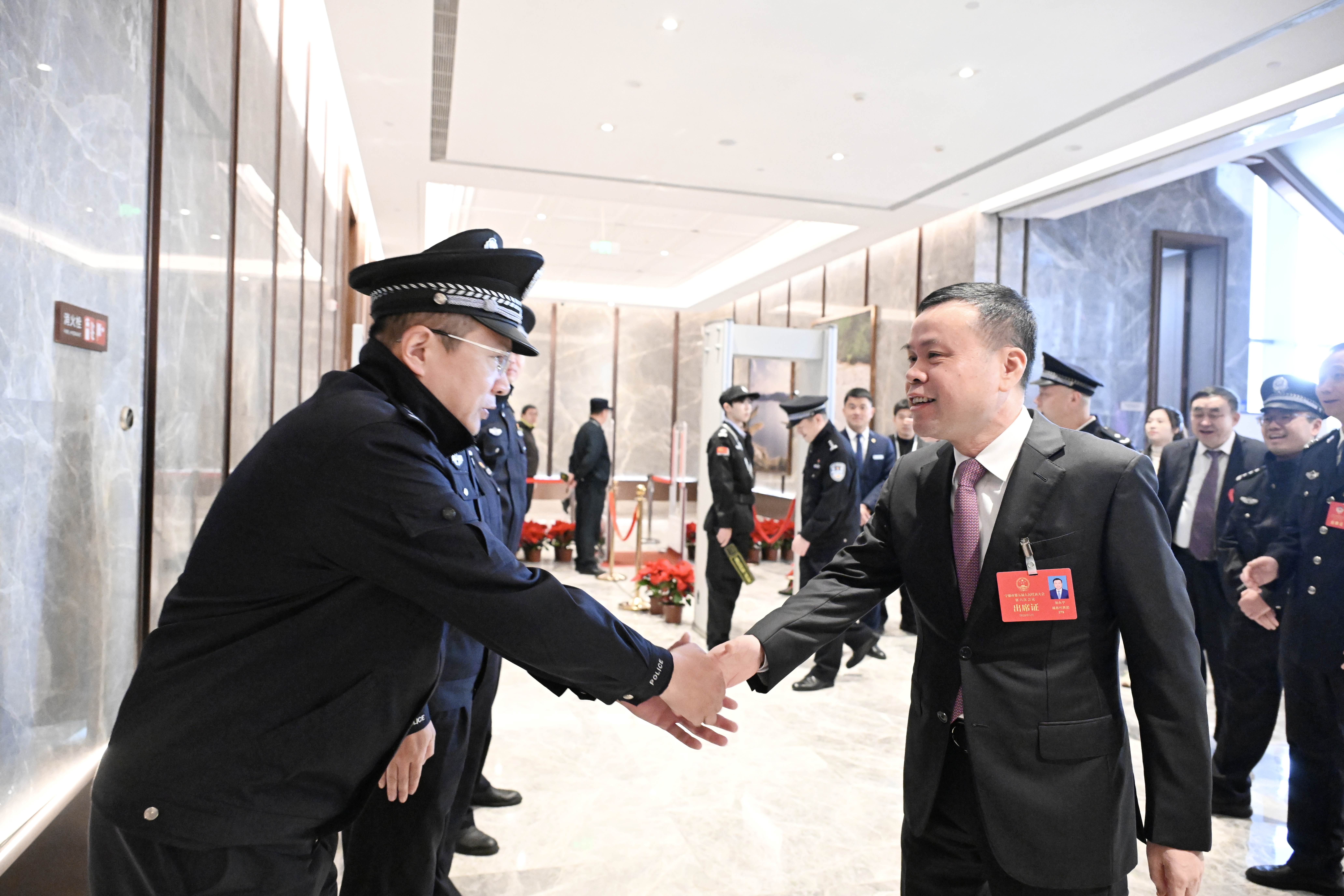 1月14日,市五屆人大六次會議開幕前,市委書記張永寧,市委副書記、市長潘國強,市人大常委會主任王世雄,市政協主席蘭斯琦專程看望在市兩會安保工作一線執勤的公安民警,向他們致以誠摯感謝以及第六個中國人民警察節的美好祝福。