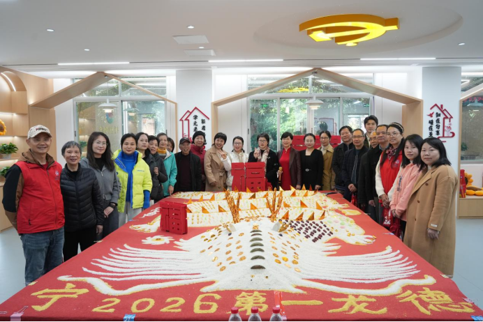 “米龍”非遺文化的展示與體驗成為本次活動的亮點。“ho(好)啊!”在一聲聲喝彩中,長桌上,一幅用大米堆起的“龍圖騰”栩栩如生、呈現在眾人面前,隨后,大家依次為“米龍”點睛。據悉,米龍祈福是福建流傳千余年的特色民俗活動,象征新一年美好的開端。一幅 “米龍”,將吉祥、團圓、興旺的寓意與喜慶氛圍,巧妙融入養老服務站啟動活動之中。現場,老年居民與青年朋友圍坐在一起,或閑聊暢談,或對弈品茗,在輕松互動中拉近了彼此的距離。當天,蕉北街道共有鶴峰、三元、繼光、崇文四個社區居家養老服務站同步對外開放。