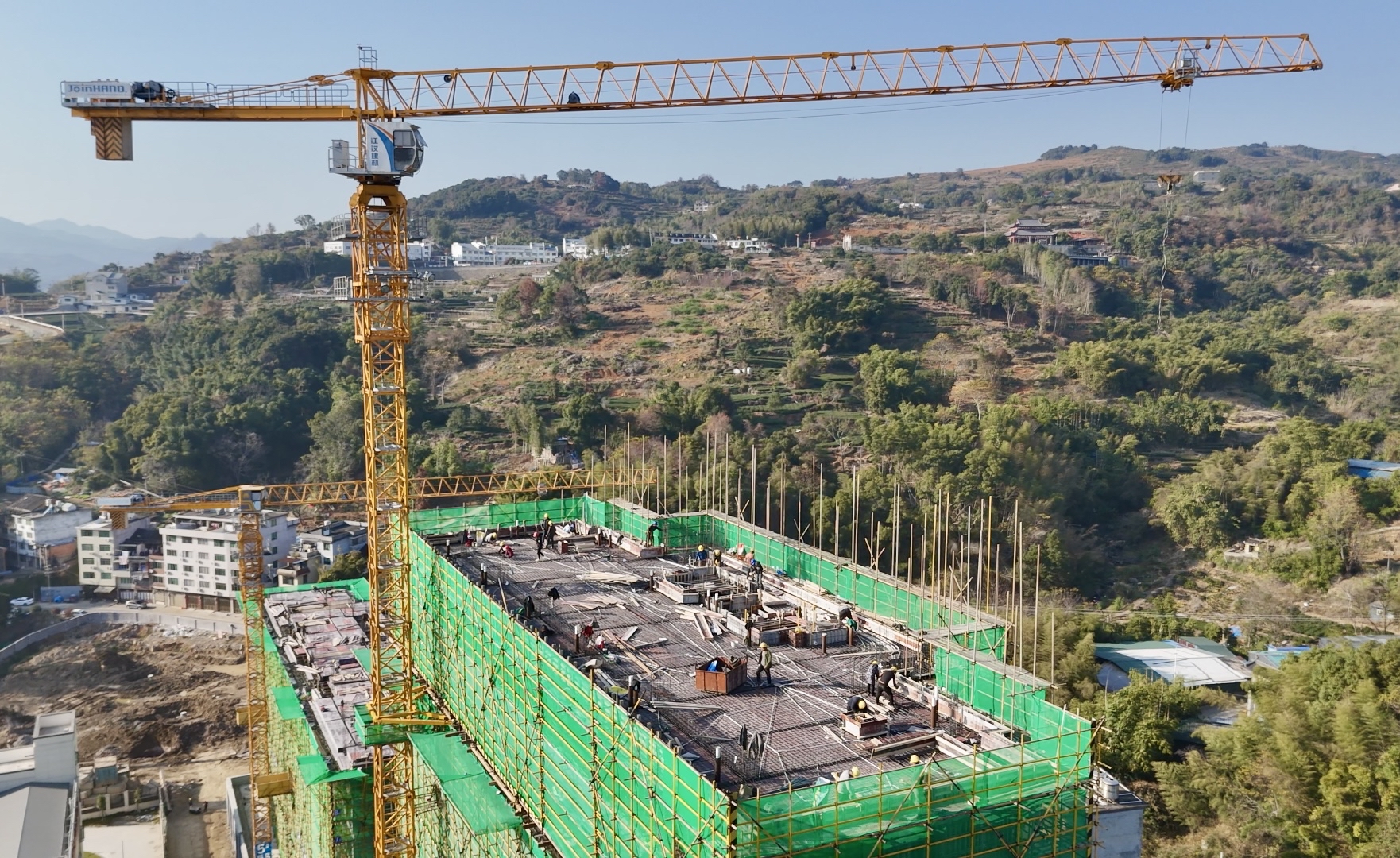 日前,記者在福鼎市山前街道梅溪舊村改造項目施工現場看到,高聳的塔吊正來回調運物資,工程車輛往返穿梭,工人們在各自崗位上緊張有序地忙碌,一棟棟嶄新的建筑已拔地而起。