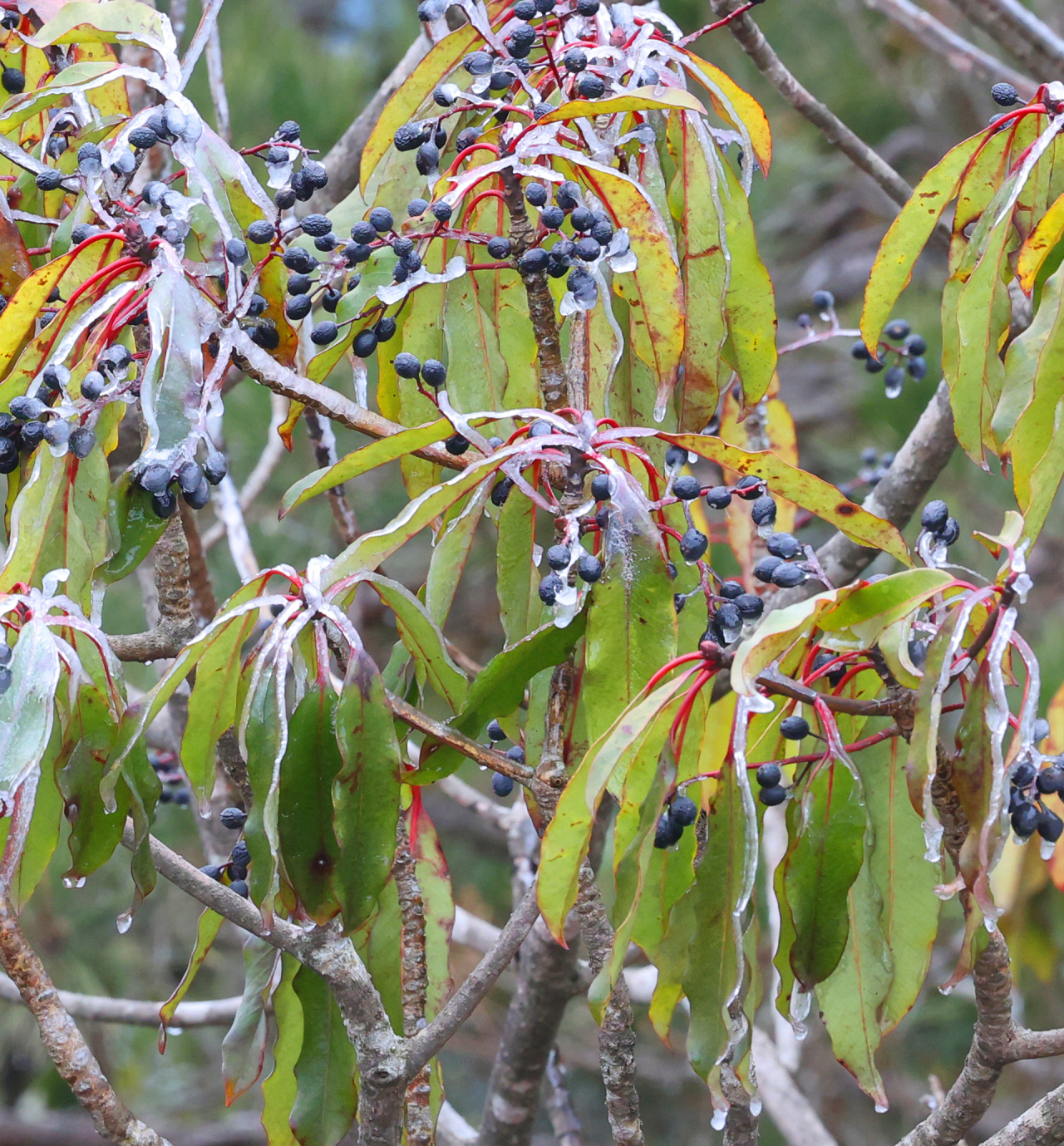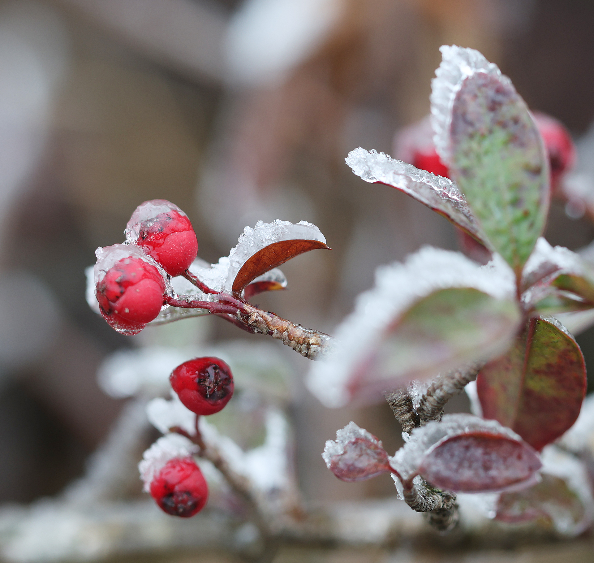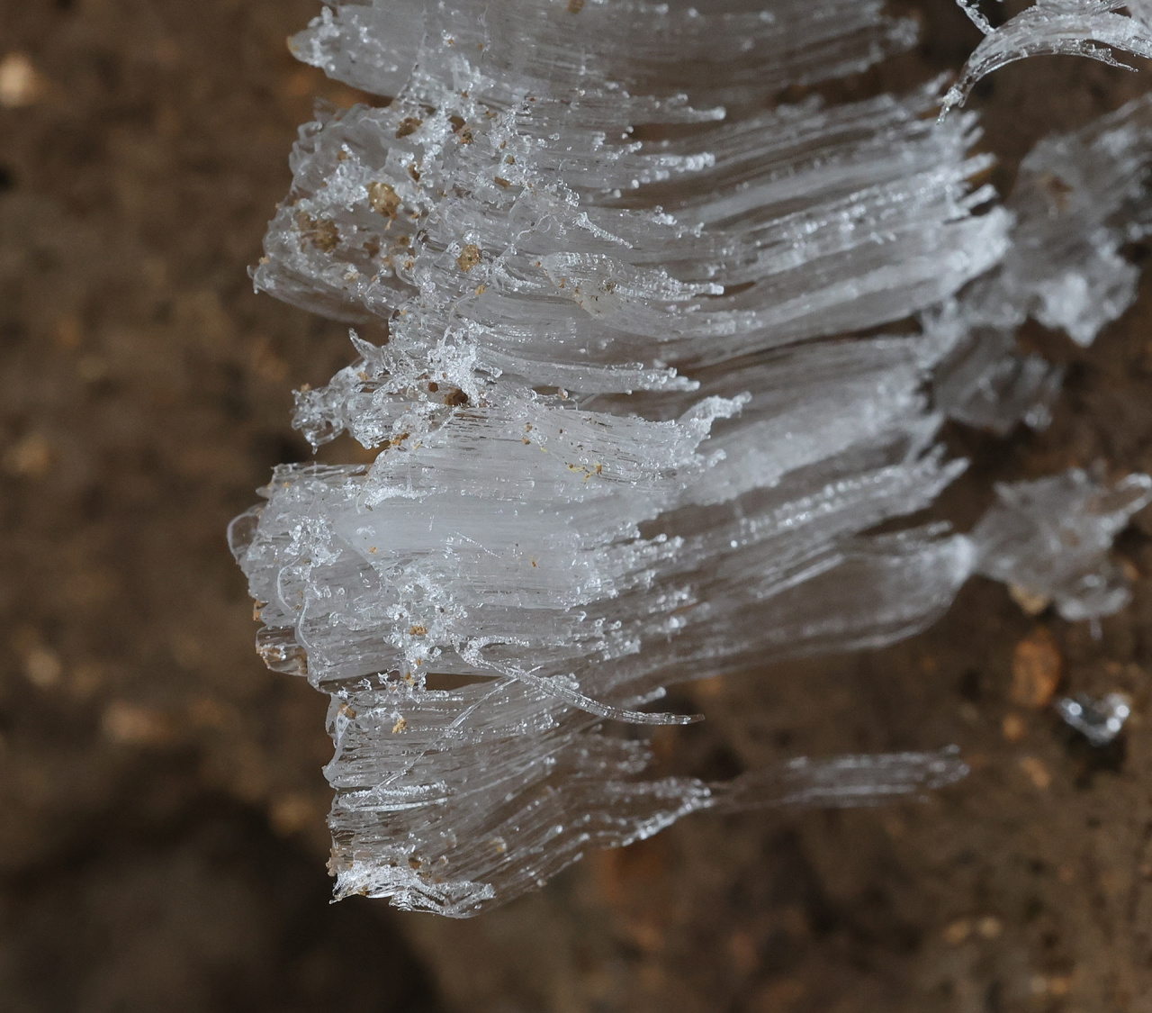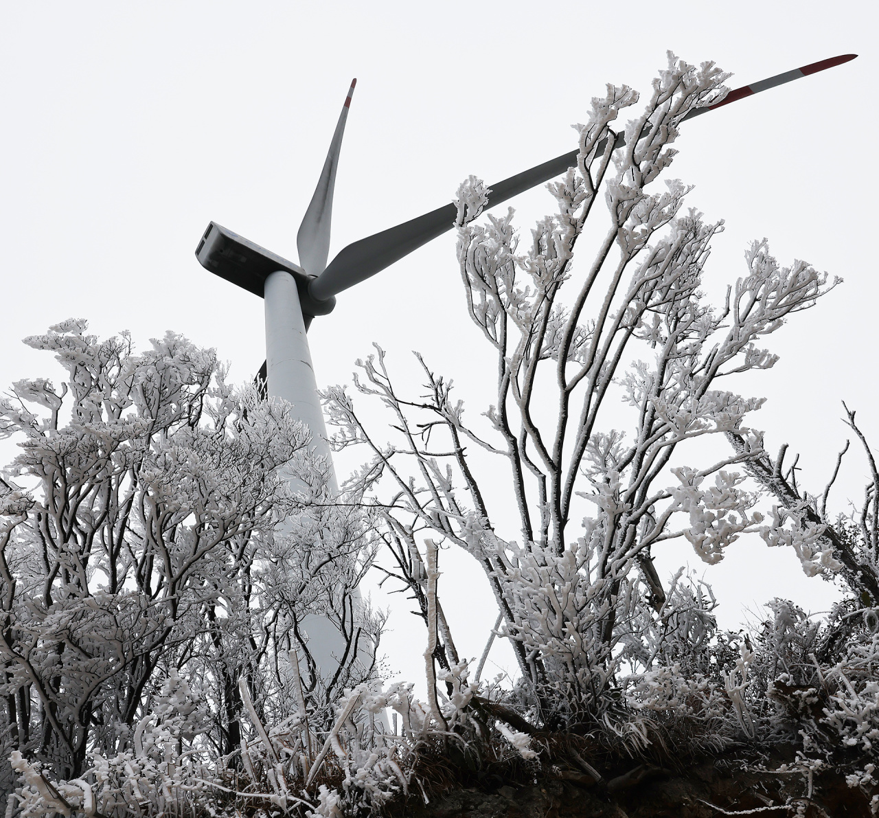 低溫濕冷的天氣,給雙苗尖悄悄披上了一層潔白的輕紗。松樹與灌木仿佛一夜之間開出了玉樹瓊花,美得令人屏息;樹枝上、野果上、葉片上、草叢間,凝結(jié)著晶瑩的霧凇;地面的土層在凍脹作用下,也鉆出了一針針細(xì)長的冰晶。在鏡頭下,這些自然雕琢的細(xì)節(jié)被放大,仿佛走進(jìn)了一個(gè)靜謐而奇幻的冰雪世界。