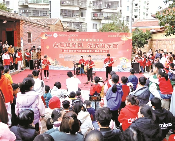 “我們不搞‘靜態(tài)陳列’,依托宗祠舉辦的各種活動,讓家訓(xùn)活在日常。”侯卿陳氏家風(fēng)家訓(xùn)館講解員介紹,宗祠定期舉辦理論宣講、燈謎書法、曲藝展演等活動,侯卿正月十八御賜宮鼓游鄉(xiāng)這一惠安首批非遺項目,更成為家風(fēng)傳承的流動載體。除了文化活動,館內(nèi)還設(shè)立“愛心驛站”,為村民與游客提供飲水、休息、應(yīng)急藥品等便民服務(wù),定期聯(lián)合醫(yī)療、文化機(jī)構(gòu)開展義診、義演、家風(fēng)講座,讓文化傳承與公益服務(wù)在古祠內(nèi)相得益彰。