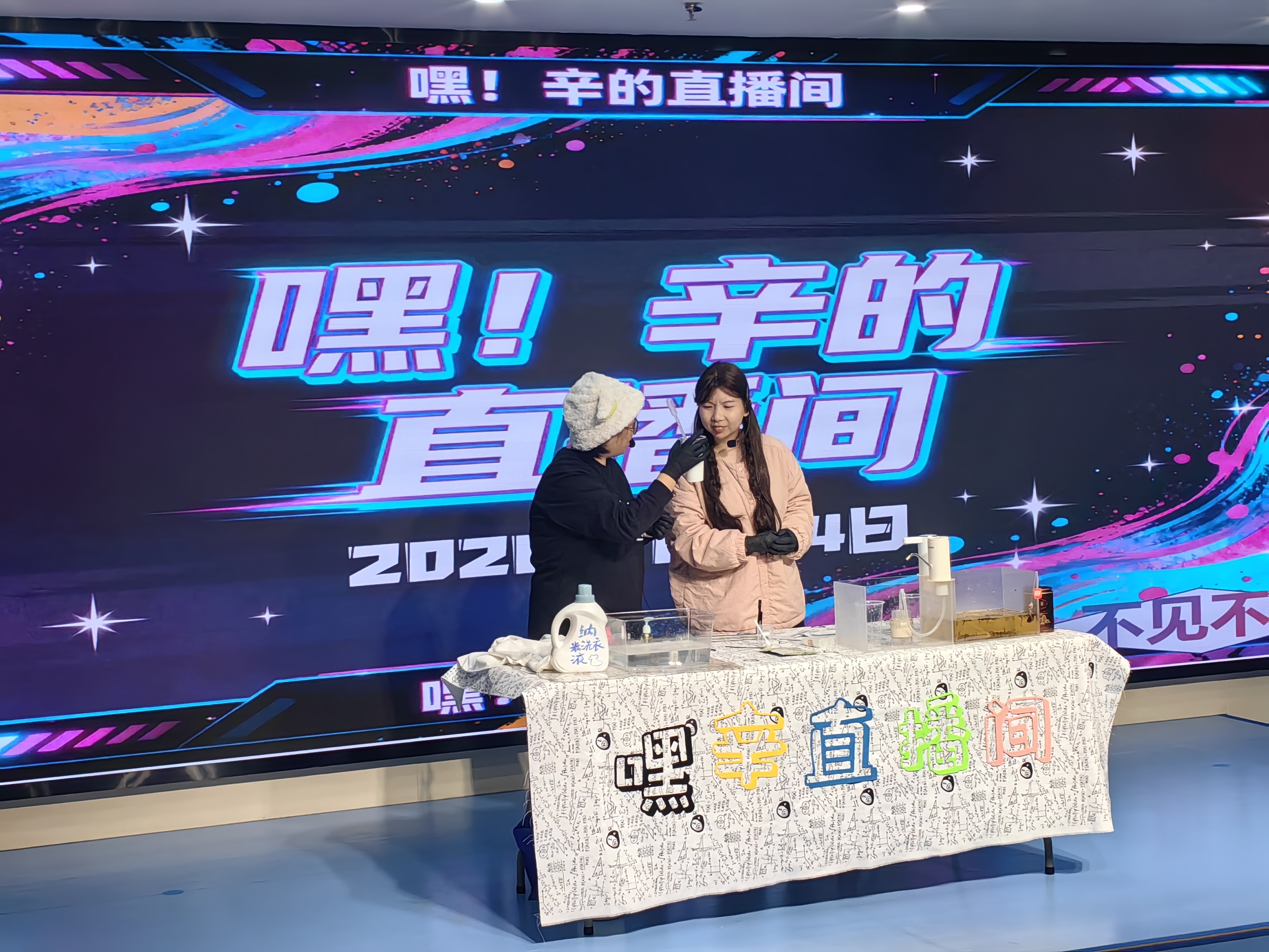 1月25日,市科技館全新打造的科普情景劇《嘿!辛的直播間》精彩上演,科技輔導(dǎo)員化身“元?dú)庵鞑?rdquo;,用三個(gè)趣味實(shí)驗(yàn)揭開“合成牛奶”“納米洗衣液”“量子能量?jī)羲?rdquo;的虛假面紗,讓學(xué)生們?cè)谛β曋袑W(xué)會(huì)識(shí)破消費(fèi)陷阱。