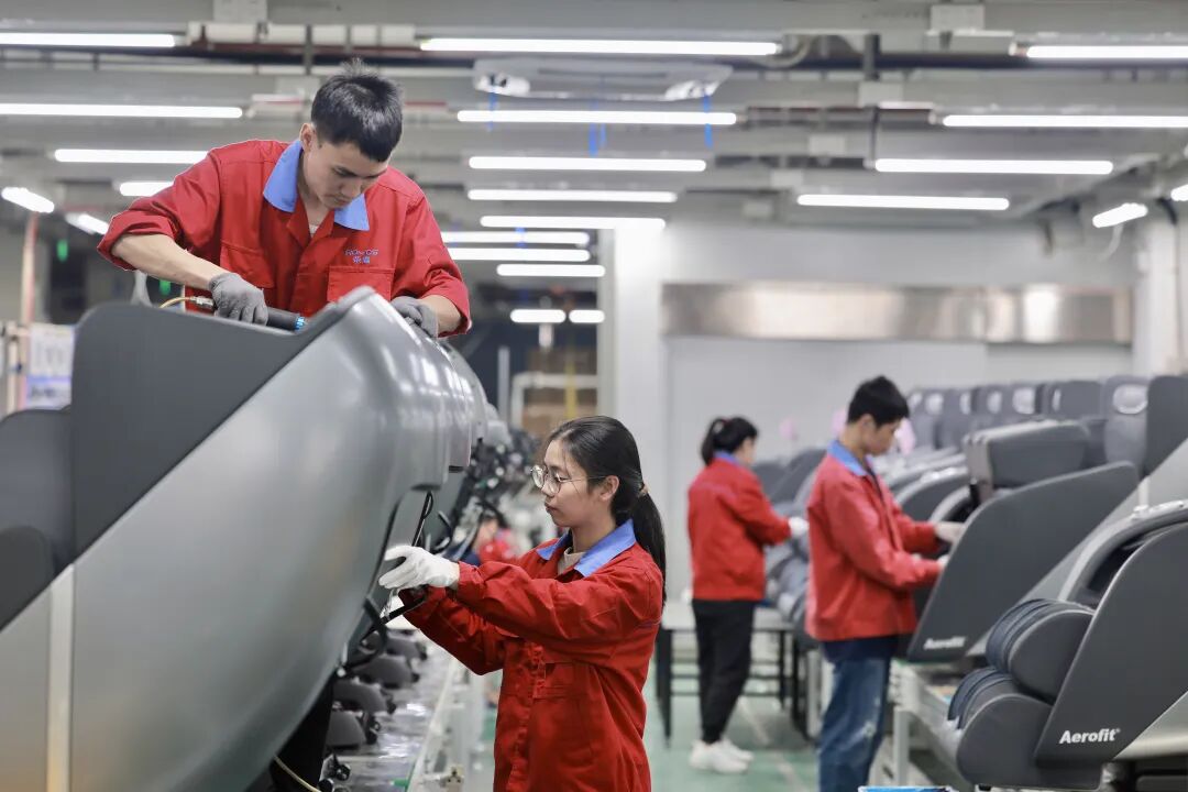 榮耀健康車間內,技術人員在組裝按摩椅。圖片來源:今日福安