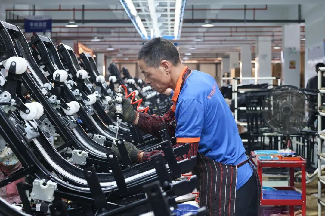 怡和生產線上,工人在組裝按摩椅。陳雅芳 攝