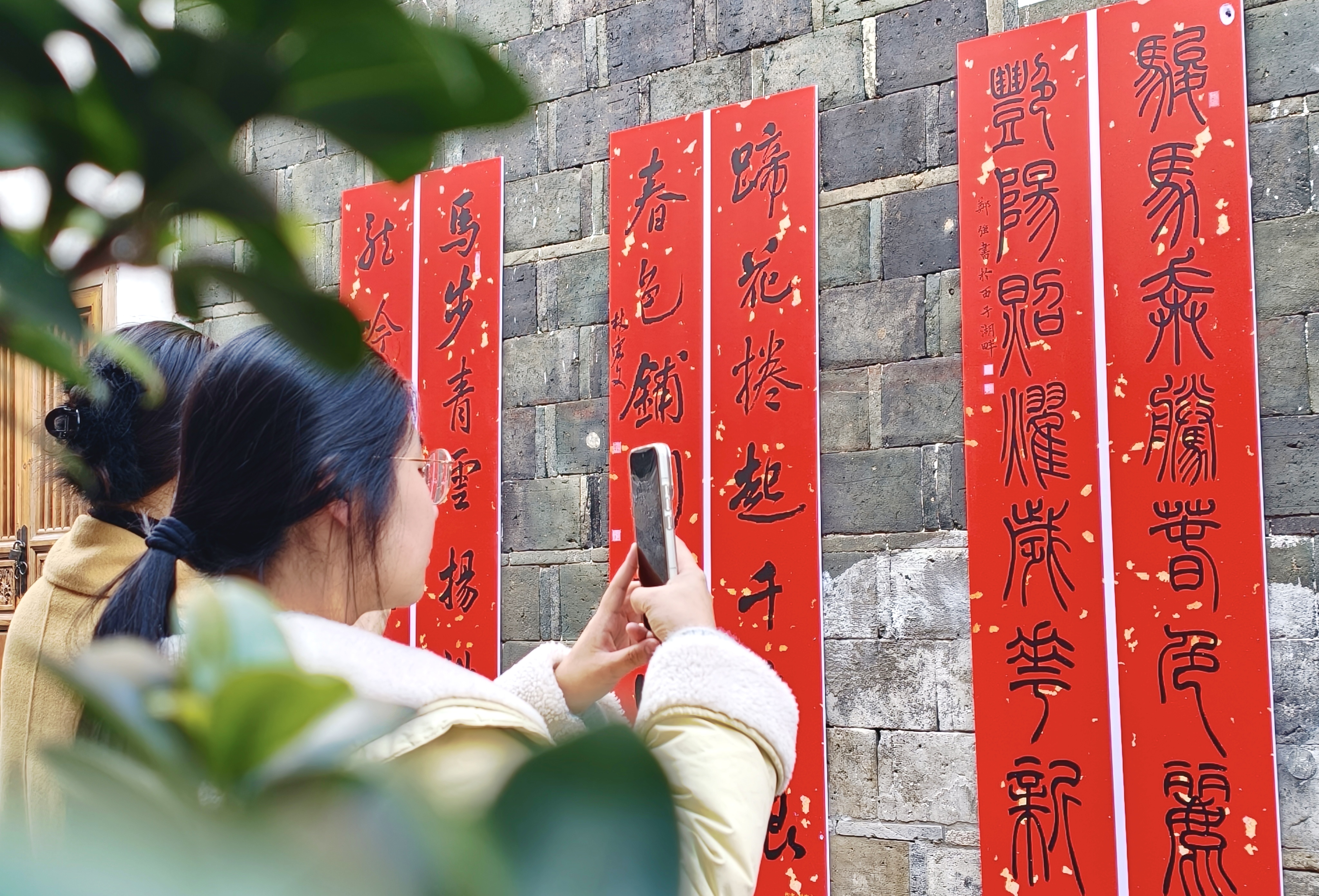 古街的文化氛圍同樣濃厚。一場新春春聯書法展正在街區火熱開展,展期從2月8日持續至3月3日,一幅幅寓意吉祥的春聯整齊陳列、相映成趣,形成了一道雅致的“春聯墻”。墨香與年味交融,既展現了書法藝術的獨特魅力,也傳遞著人們對新年的美好期許。