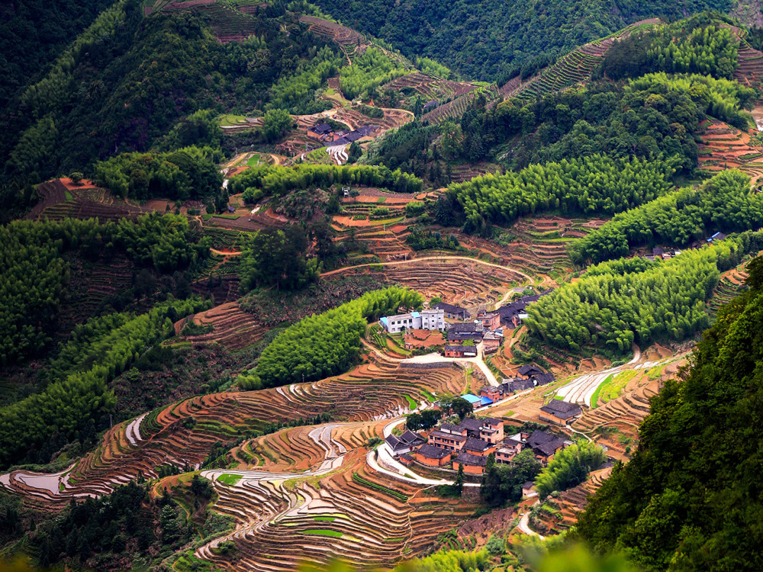 山、水、梯田、村莊和諧地融為一體