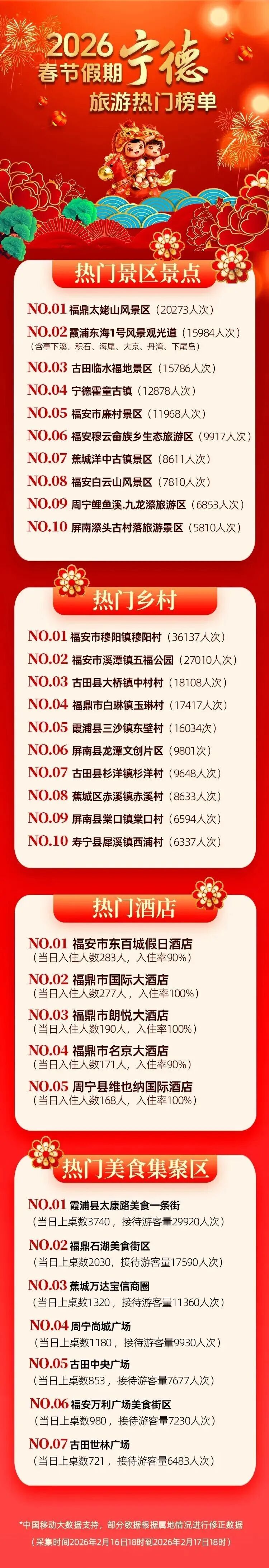 (原標題:榜單來了!大年初一寧德這些地方最熱門,有你家鄉嗎?)
