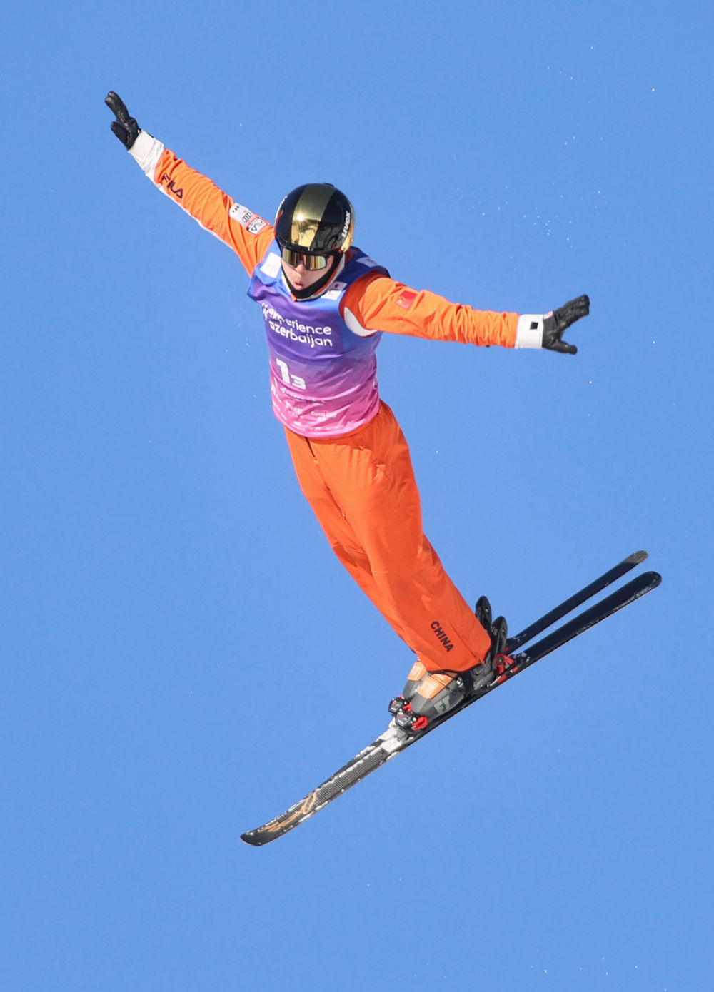 齊廣璞在國際雪聯自由式滑雪空中技巧世界杯(云頂站)混合團體項目決賽中(2025年12月21日攝)。新華社發(武殿森攝)
