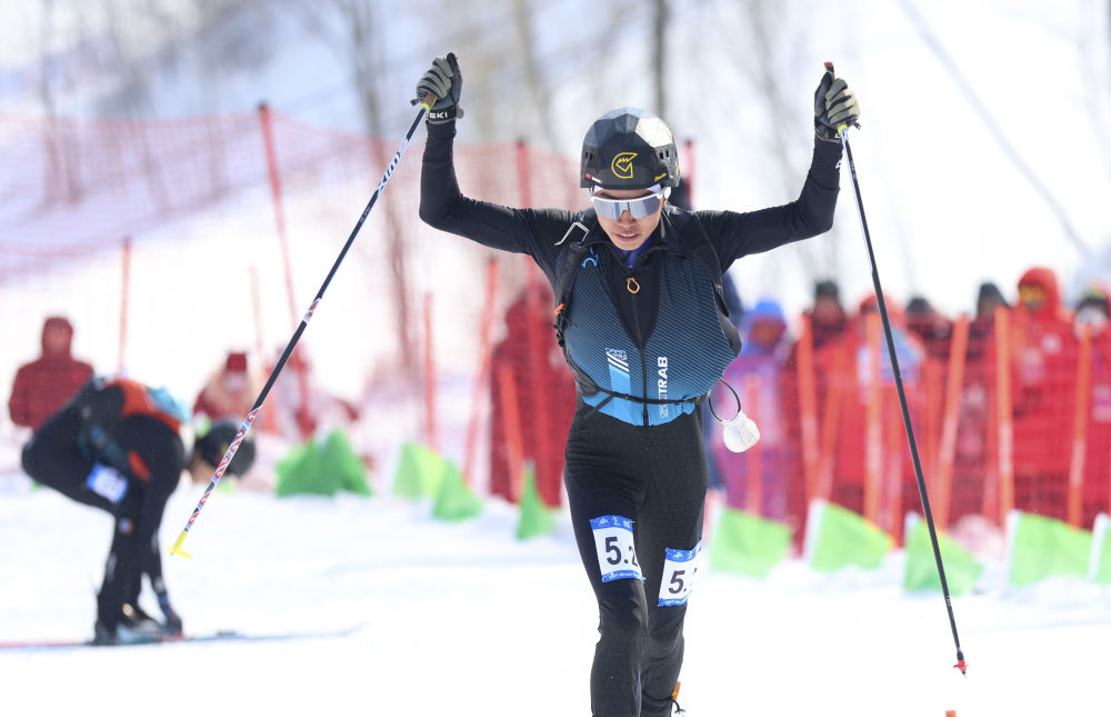 布魯爾在第九屆亞冬會滑雪登山混合接力決賽比賽中。新華社記者 楊青 攝