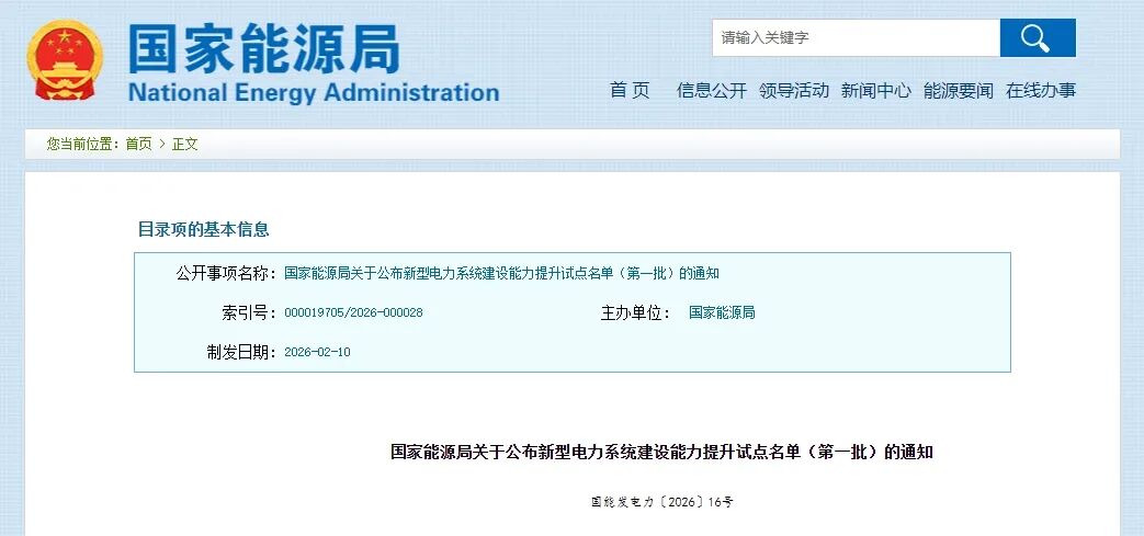 國家能源局關(guān)于公布新型電力系統(tǒng)建設(shè)能力提升