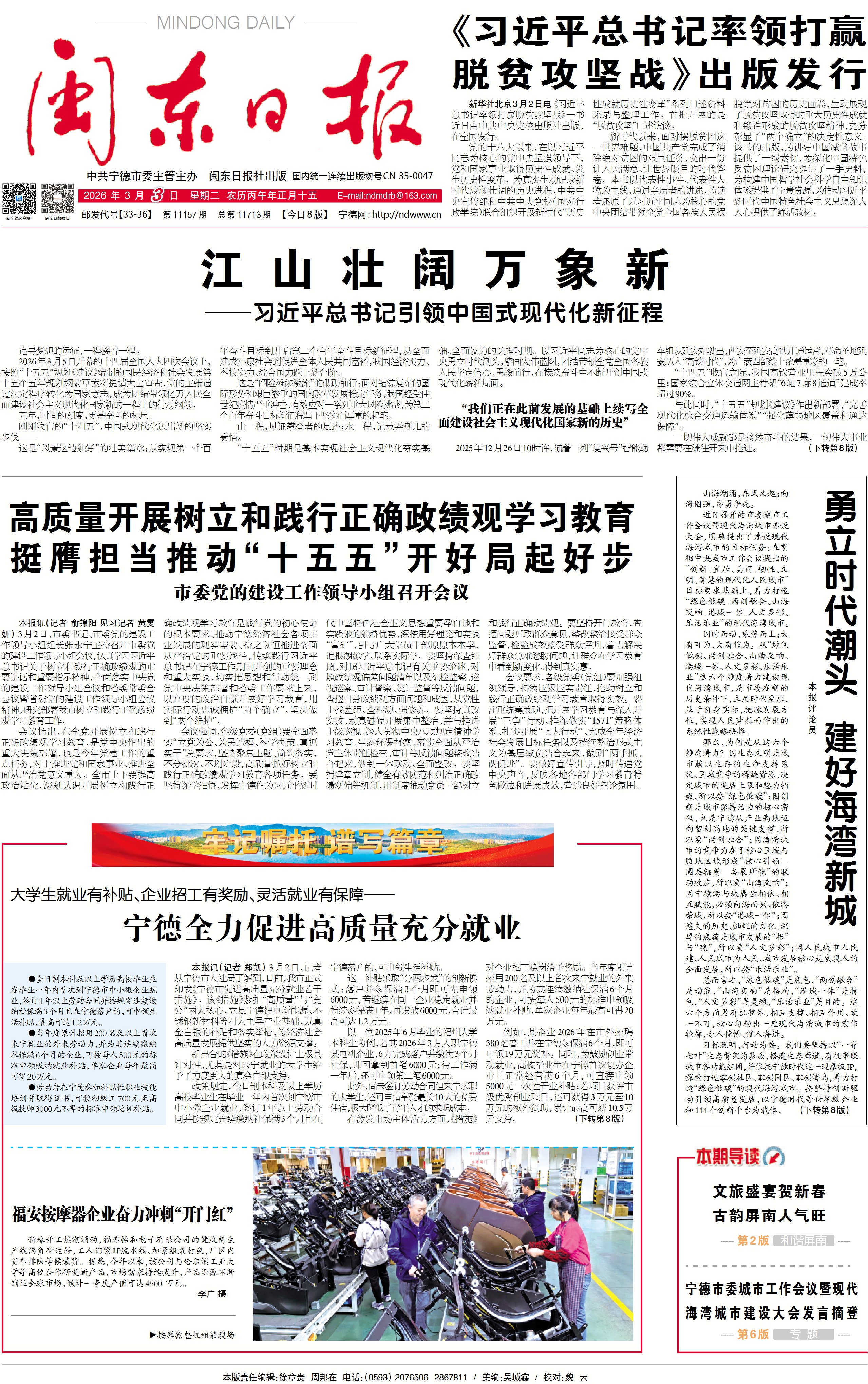目標既明,行動為要。我們要堅持以“一脊七葉”生態骨架為基底,搭建生態廊道,有機串聯城市各功能組團,并依托寧德時代這一現象級IP,探索打造零碳社區、零碳園區、零碳海島,著力打造“綠色低碳”的現代海灣城市。要堅持創新驅動引領高質量發展,以寧德時代等世界級企業和114個創新平臺為載體,打造“創新突破—產業落地—生態反哺”的閉環體系,探索形成“寧德研發、全球應用”的創新擴散模式,著力打造“兩創融合”的現代海灣城市。要堅持推動沿海與山區功能互補,以“七抓七帶促共富”為抓手,著力推動產業布局從“地理相鄰”向“功能互補”轉型,構建以“兩新一大一轉”為重點的現代化產業體系,著力打造“山海交響”的現代海灣城市。要用好寧德港城融合區位條件,加快打造“空港+陸港+海港”多式聯運集疏運體系,讓港口從單一的“地理端口”向多功能的“貿易端口”跨越,著力打造“港城一體”的現代海灣城市。要堅持保護與活化利用并重,在強化系統性保護的基礎上,重點推進非遺工坊、文化驛站等沉浸式文化場景建設,加快實施文化藝術中心、“閩東之光”博物館等重大文化工程,深化拓展文化利用復合空間,著力打造“人文多彩”的現代海灣城市。要堅持以人民為中心的發展思想,打出一套集聚人口“組合拳”,提高城市承載力和宜居度,并以“人民城市”理念審視和設計城市項目,打造“樂活樂業”的現代海灣城市。