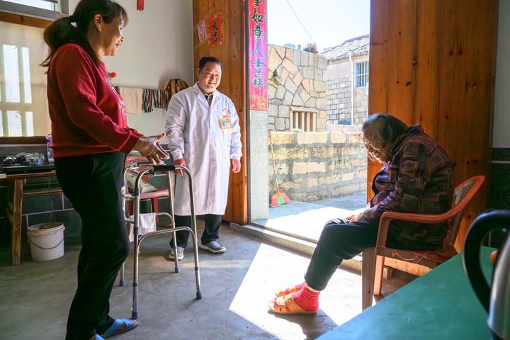 2025年12月10日,在莆田黃瓜島,村醫吳群雄去村民家中看望老人。蔡昊 攝