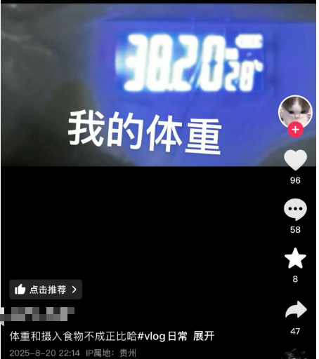 最后一條回復在8月21日,前一天晚上,她發布自己的飯量和體重38.2kg的照片,笑稱兩者不成正比。