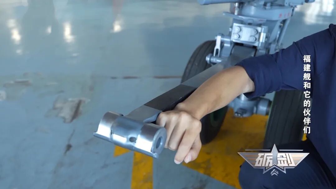 彈射桿是為殲-15T飛機彈射起飛量身制造的。它能直接鉤住航母甲板上的電磁彈射器,瞬間就能把幾十噸重的殲-15T從靜止的狀態加速到幾百公里每小時,拽著戰機沖離甲板。