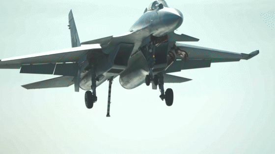 無論彈射起飛還是著艦,殲-15T都會承受巨大的沖擊力和載荷,就像幾十噸重的物件從好幾百米高空猛砸地面。為了扛住壓力,殲-15T的前起落架和殲-15相比更粗壯結實,不只是簡單加粗,相當于對前起落架做了一次“重新設計”。